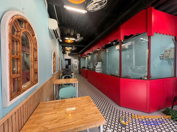 Diện tích quán: 4mx25m. Gồm 1 sân để xe, 1 trệt máy lạnh, 1 lầu, 1 kho.